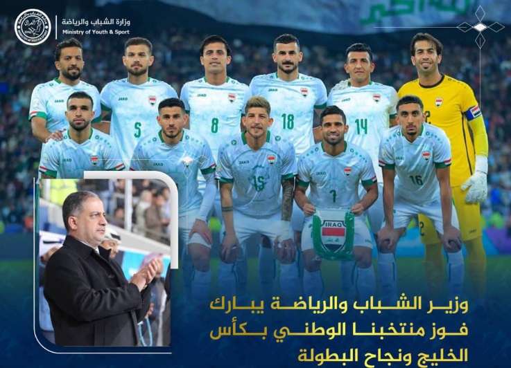 بارك وزير الشباب والرياضة السيد ” أحمد المبرقع ” لشعبنا وجماهيرنا الرياضية نجاح بطولة الخليج بنسختها الخامسة والعشرين في البصرة وتتويجها بأحراز كأس البطولة الاغلى الذي اسعد جماهيرنا وشعبنا عموما.